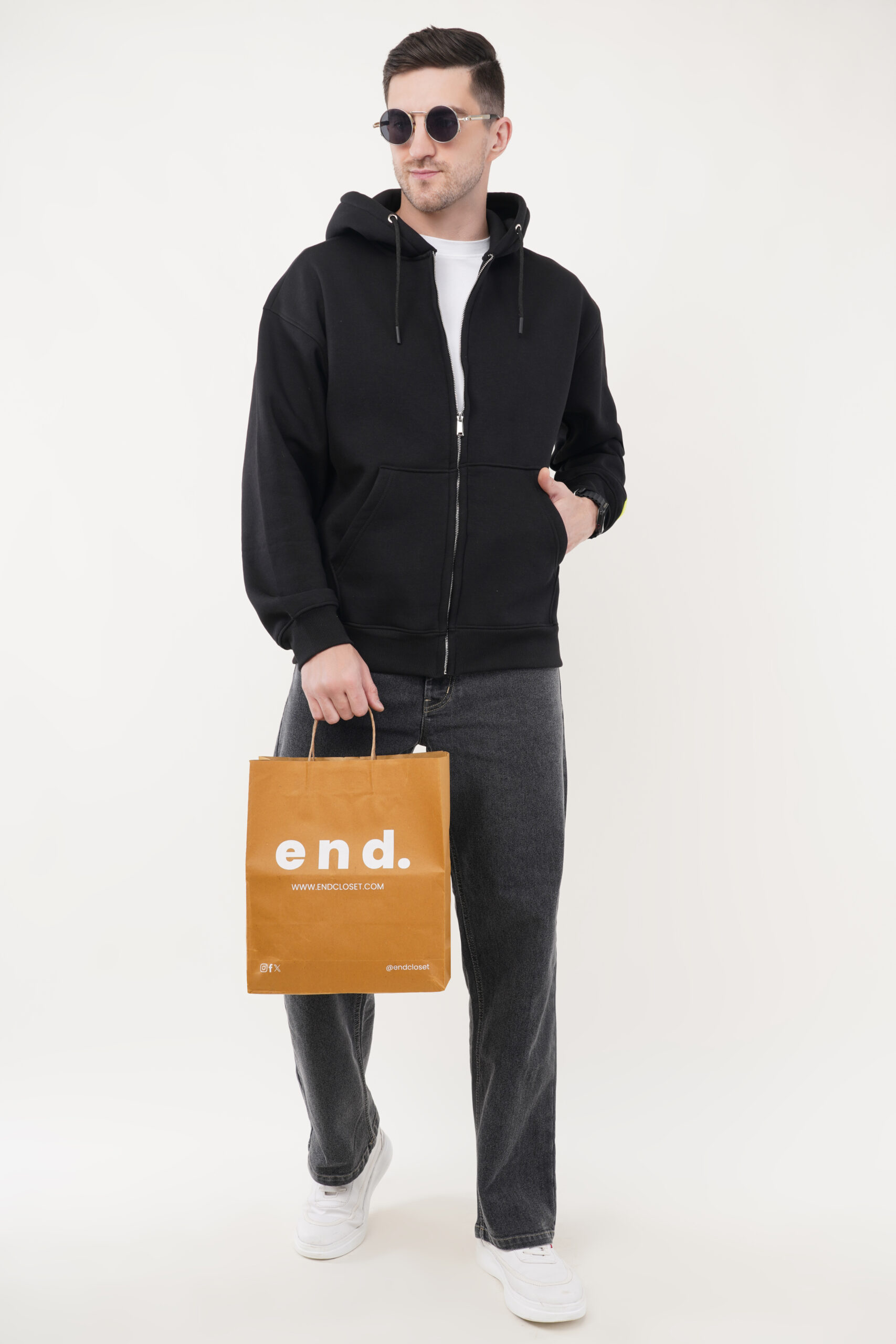 Designed for everyday luxury, the End Closet Oversized Black Zip Hoodie is crafted from 410 GSM heavyweight fabric that feels rich, structured, and comfortable. It provides warmth without bulk, making it ideal for daily wear.